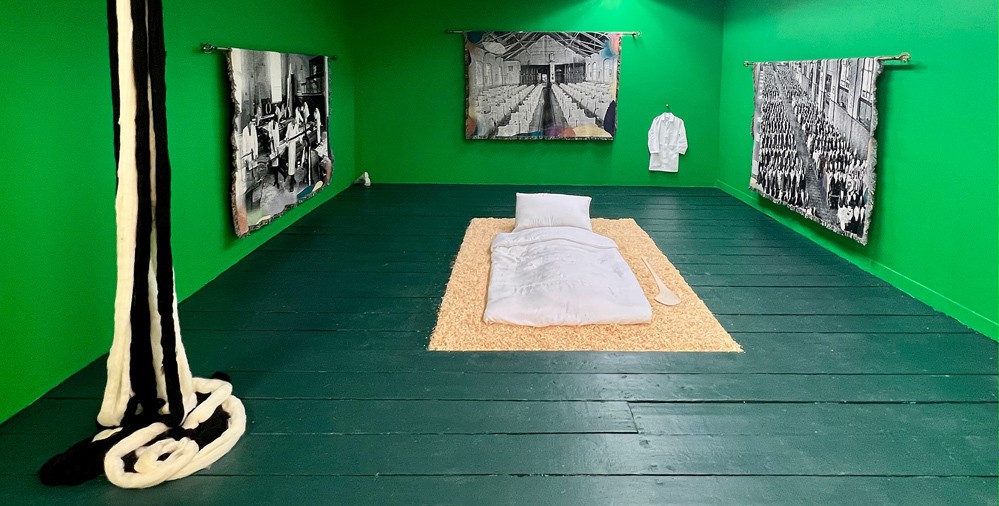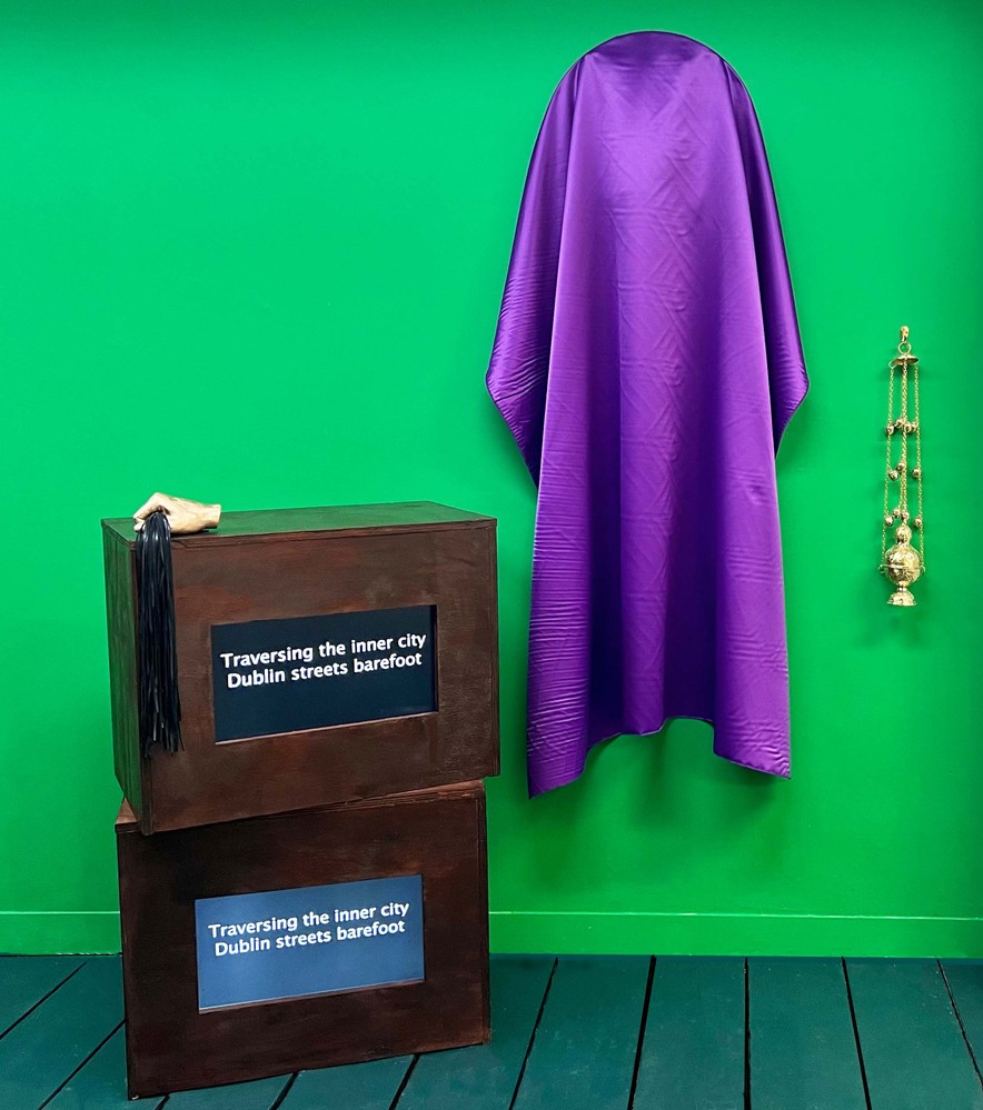 By bringing together materials, objects, images, and stories in an installation context her work creates a space for discussion and reflection on working-class histories. It is her belief that it is much needed in this industry to let working-class people tell their own stories. She also believes all materials are biased, and that objects have a collectively known cultural value. It is her intention to instrumentalise and weaponise the shared meaning of materials and objects to visually tell working-class histories and to create an embodied empathy/identity for the subject matter. She is working on a year-long project based on the regeneration of flat complexes like the Oliver Bond Flats where she grew up, and will include sculptures of things like communal washing poles, stairway arches, rubbish chute systems, pram sheds and other things unique to these sites.